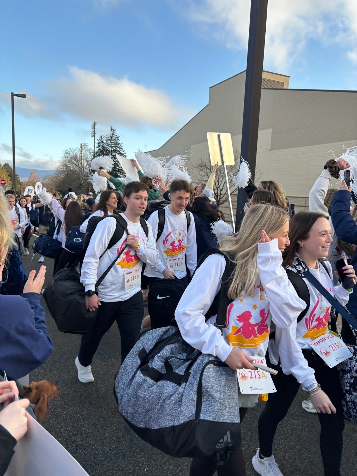 Before the official 46 hours begin, dancers report to the Penn State football program’s Holuba Hall to receive their dancer kits, which includes customized long-sleeve shirts, dancer bibs, and Nike backpacks filled with supplies, merch, and small distractions meant to help get through the weekend. From there, dancers head to the Bryce Jordan Center through what is known as the Human Tunnel. Hundreds, if not thousands, line the path, cheering as dancers walk toward what will be their home for the next two days. Seeing friends and complete strangers offering encouragement was surreal. That surge of energy, a sort of pre-THON boost, sets the tone for everything that follows.