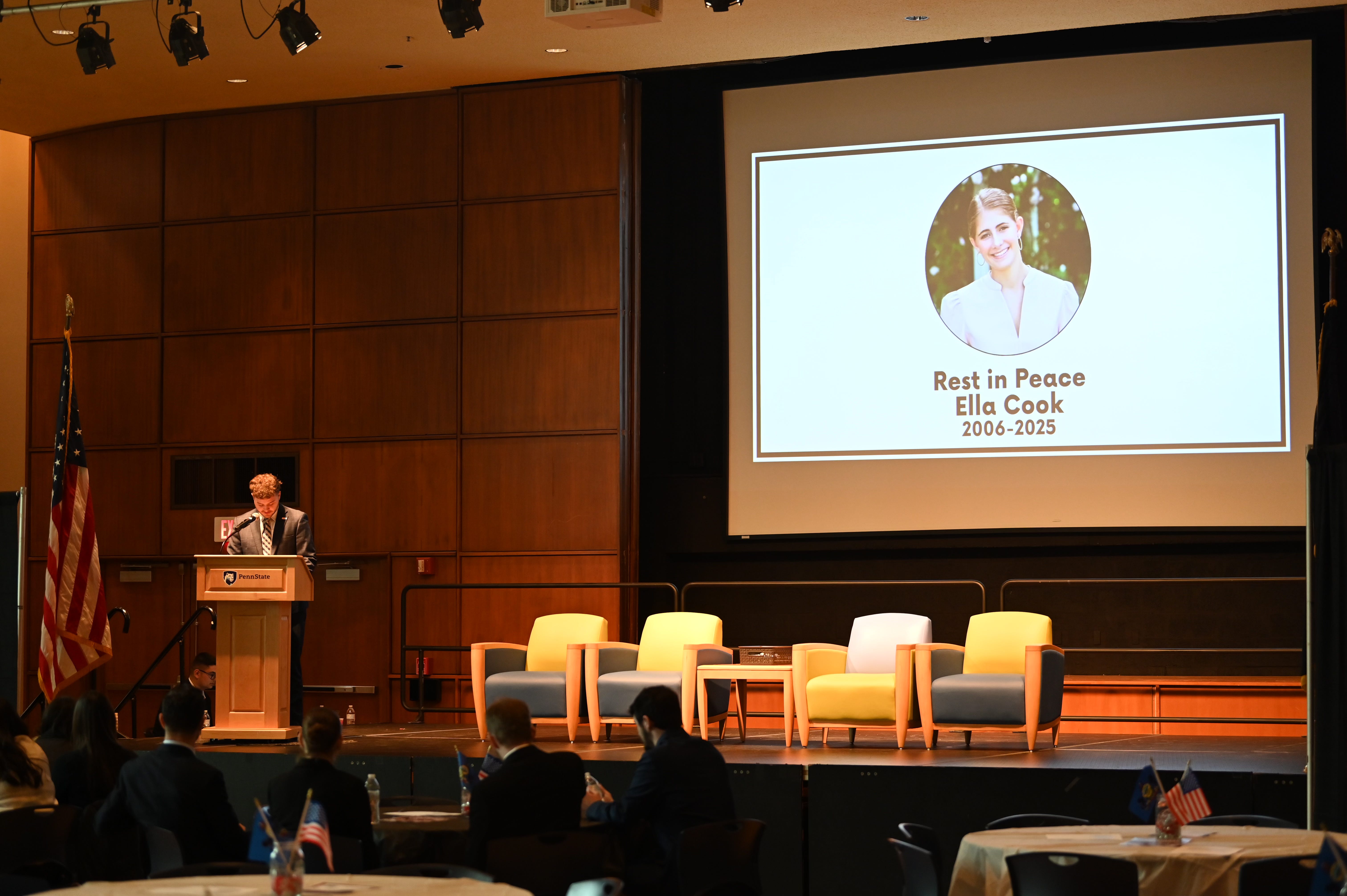 Attendees of PCLC III hold a moment of silence in honor of slain Brown College Republicans Vice President Ella Cook, Jan. 17, 2026, in University Park, Pa. Courtesy of Hunter Steach